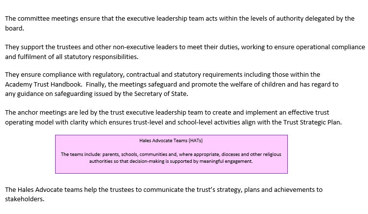 Following a successful internal audit of a community-focused governance model, Hales Valley Trust will continue to develop their Local Governance Advocates in each of its schools.
