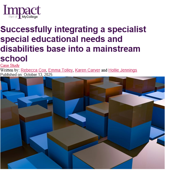 We had an article published in October 2025 by the Chartered Colleg of Teaching about our specialist bases in mainstream schools.